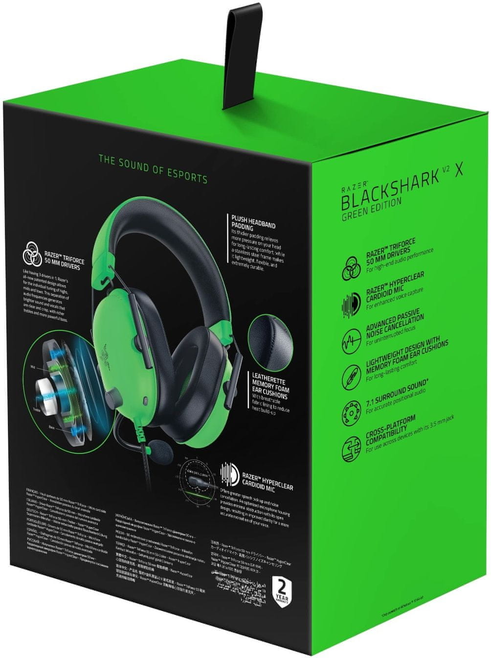 Za popolnoma poglobljeno igralno izkušnjo ne potrebujete le odlične slike, temveč tudi prvovrsten zvok – za to bodo poskrbele Razer Blackshark V2 X igralne slušalke Popolna jasnost zvoka je zagotovljena zahvaljujoč 50 mm gonilnikom s podporo za izolacijo zunanjega zvoka in podporo za THX Spatial Audio 7.1 virtualni prostorski zvok. Absolutna poslastica je možnost individualne izravnave treh frekvenčnih pasov: nizke, srednje in visoke. To vam omogoča, da natančno nastavite zvok po svojih željah.