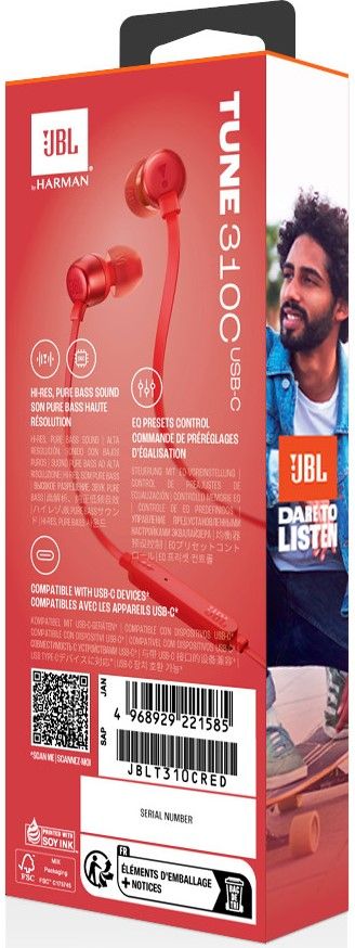 JBL Tune 310 USB-C žične slušalke, rdeče