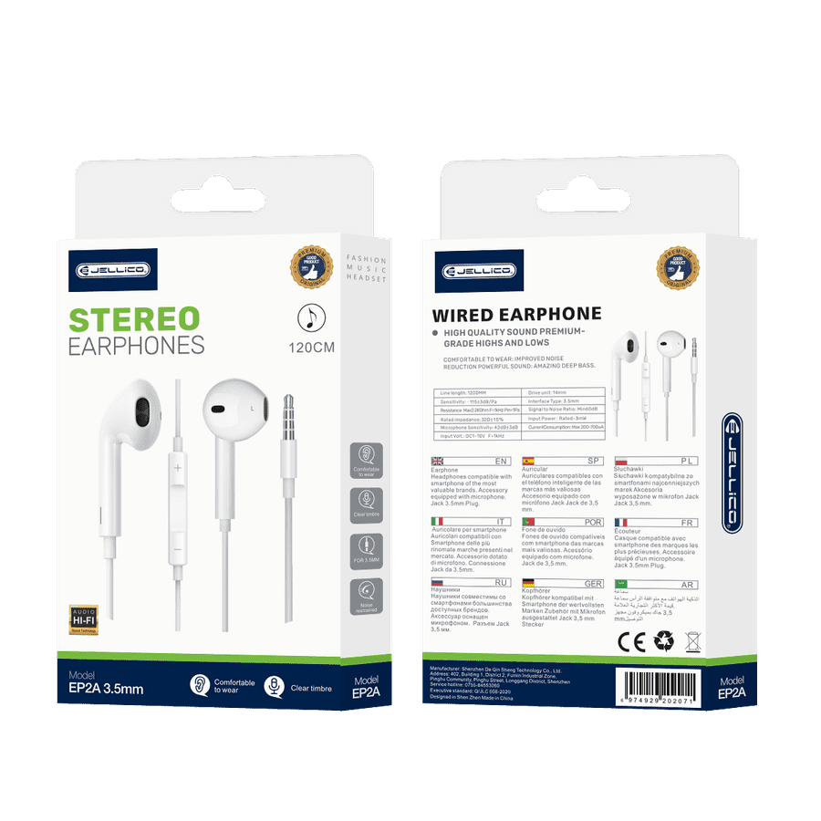 Jellico sluške EP2A v beli barvi s 3,5 mm vtičem in mikrofonom so primerne za vse naprave. Udobno nošenje in odlična glasbena izkušnja sta zagotovljena, saj omogočajo enostavno upravljanje z dotikom tipke za javljanje na klice. Celoten opis