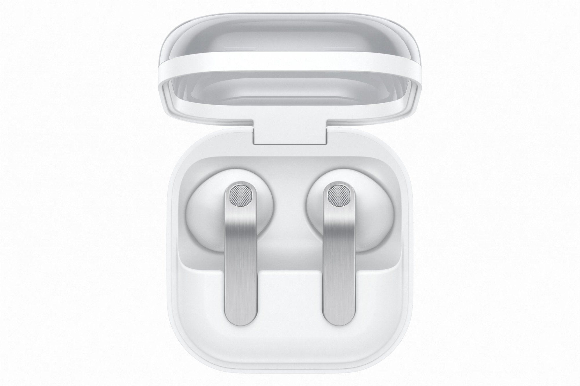 Slušalke Galaxy Buds4 navdušujejo z ikoničnim kovinskim dizajnom, ki združuje lepoto in funkcionalnost. Njihova kompaktna in lahka zasnova zagotavlja, da jih lahko vzamete kamorkoli, medtem ko prosojen pokrov polnilne škatlice omogoča hiter pregled nad vašimi slušalkami.