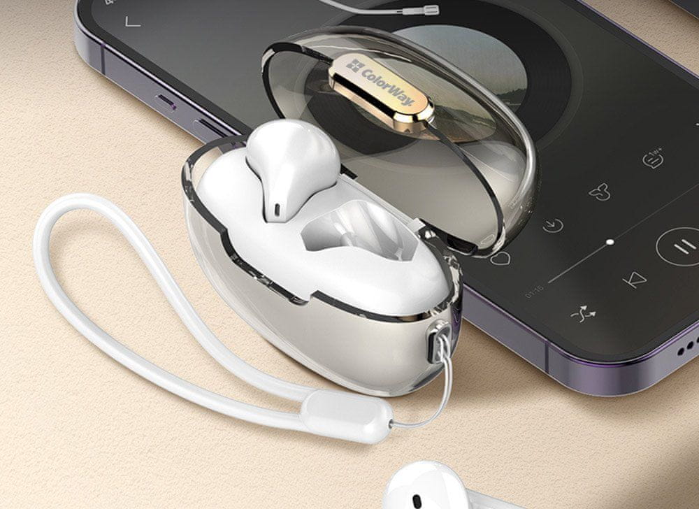 ColorWay CW-TWS2WT brezžične slušalke z mikrofonom za poslušanje glasbe brez omejevalnega kabla. Zasnovane so za vse zvočne medije, ne glede na to, ali imate raje glasbo, podcaste, zvočne knjige ali celo zasebno gledanje filmov in televizijskih oddaj na poti. Slušalke vključujejo mikrofon za glasovno komunikacijo prek pametnega telefona, tabličnega ali prenosnega računalnika.