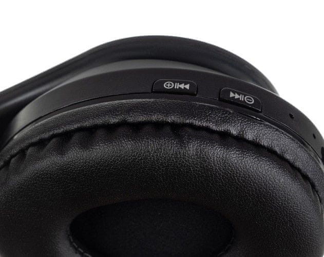 • SPECIFIKACIJA  – barva: črna; frekvenčni odziv: 20Hz-20Khz; Različica Bluetooth: Bluetooth 5.0 + EDR; Podpora za način Bluetooth: A2DP 1.2; AVRCP 1.0, HSP, HSF 1.5; baterija: 400 mAh; zvočnik: 40mm / 32Ω; frekvenca 2,402–2,480 GHZ; 2,4G ISM frekvenčni pas; RF zmogljivost; občutljivost sprejemnika – 84dBm; prenosna moč do 4dBm; razmerje med signalom in šumom (SNR) 70Db; skupno harmonično popačenje (THD) 0,1 %; rdeči in modri indikator napajanja utripata izmenično; polnilna vrata: microUSB; čas pogovora do 6 ur; čas glasbe 7–10 h; čas pripravljenosti 200h; čas nalaganja 2 / 3h; delovna temperatura –20 do 55 stopinj; format: MP3, WMA; FM radio: 87,5–108,0; dimenzije slušalk: 8 / 19,5 / 18cm; nastavitev: 50–57cm; mere po zlaganju (višina / širina): 19 / 9,5 cm; teža slušalk: 217 g; teža z embalažo: 321g.