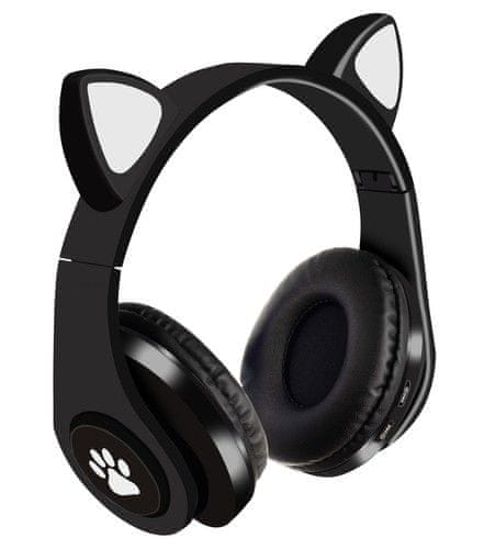Malatec Črne LED brezžične slušalke z mačjimi ušesi + mikrofon