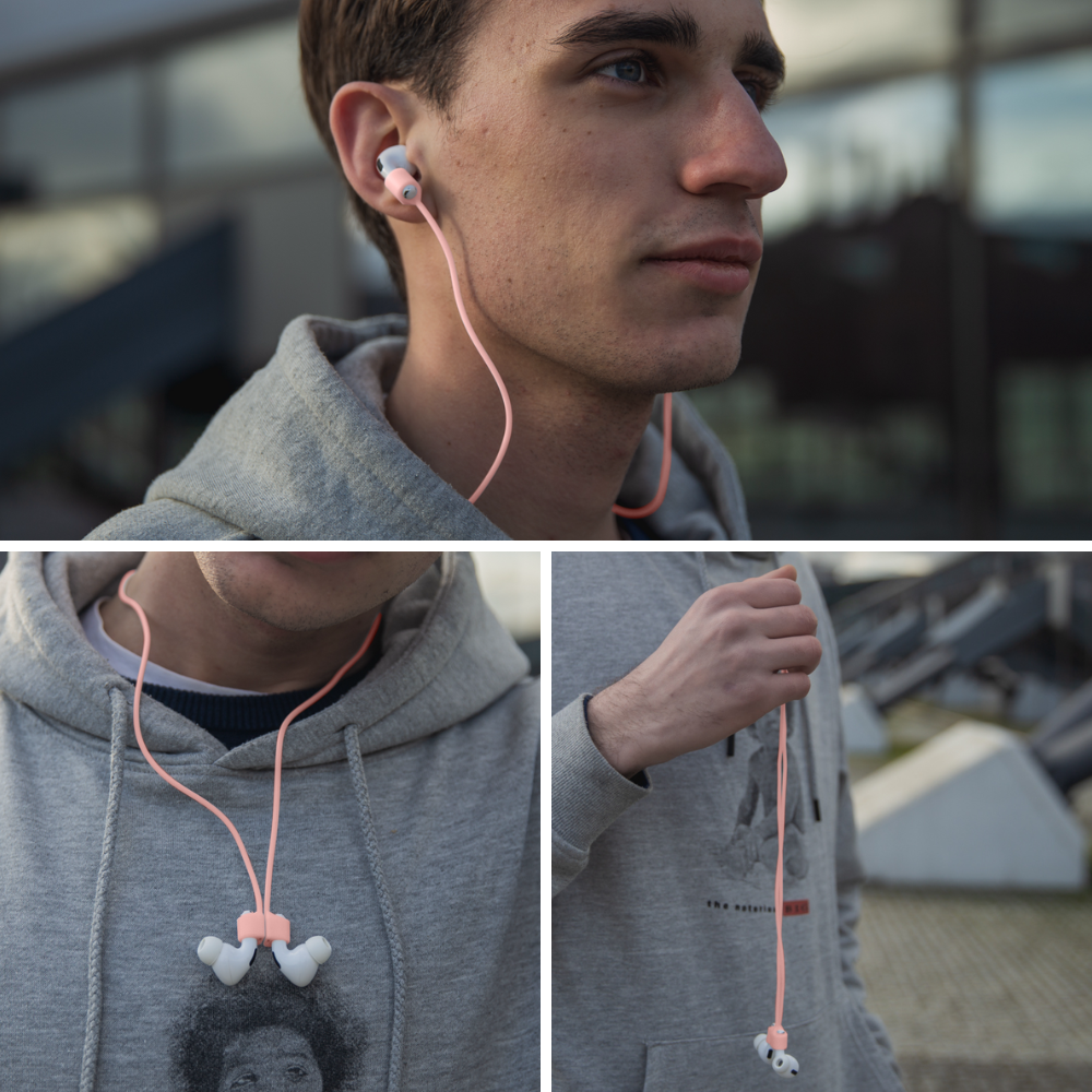 Ko morate sneti slušalke, vam ni treba segati po etuiju – preprosto zavežite vrvico okoli zapestja . Zahvaljujoč vgrajenemu magnetu se slušalke zlahka ovijejo okoli roke, pa so vedno pri roki . Za telesno aktivne ljudi je naša magnetna vrvica nepogrešljiv izdelek, ki zagotavlja udobje in varnost , kar vam omogoča, da se osredotočite na gibanje, ne da bi vas skrbelo za slušalke.