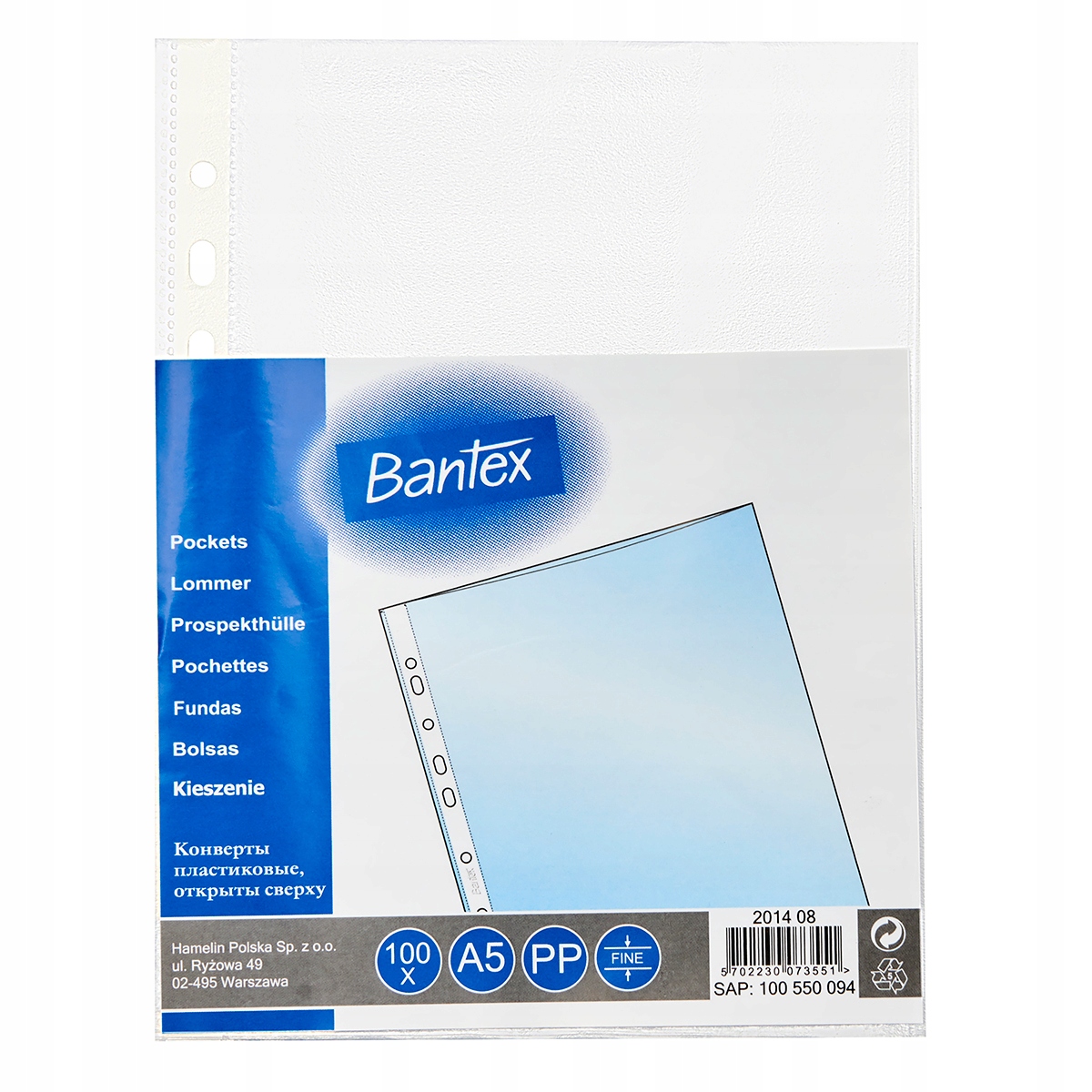 Vrečke A5 z vzorcem graha, odpiranje od zgoraj. Prozorna polipropilenska folija je antistatična in antirefleksna, zato jih je enostavno shraniti in zagotavlja odlično berljivost dokumentov.