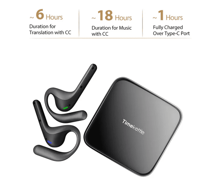 Slušalke zdržijo prevajati do 6 ur neprekinjeno. Ob nizki bateriji zadostuje 10 minut polnjenja za dodatno uro prevajanja. Polnilna škatlica zagotavlja še dodatnih 20 ur.