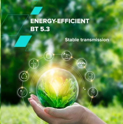 Slušalke OnGo 4 Mini so opremljene z najsodobnejšim Bluetrumovim čipovjem AB5656C in ponujajo izjemno zvočno zmogljivost, ki je konkurenčna veliko večjim slušalkam. Zahvaljujoč tehnologiji Bluetooth 5.3 boste uživali v brezhibni povezljivosti, stabilnem prenosu in podaljšanem dosegu poslušanja do 10 metrov.