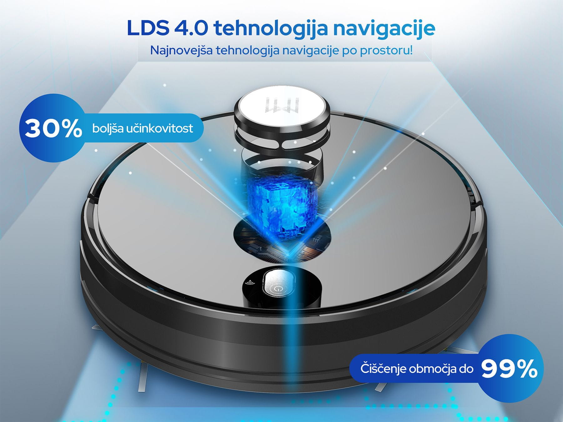 Napredno skeniranje in mapiranje prostorov omogoča sesalniku, da se hitro in lahkotno orientira po prostoru. Čiščenje bo zato tudi do 30% učinkovitejše!