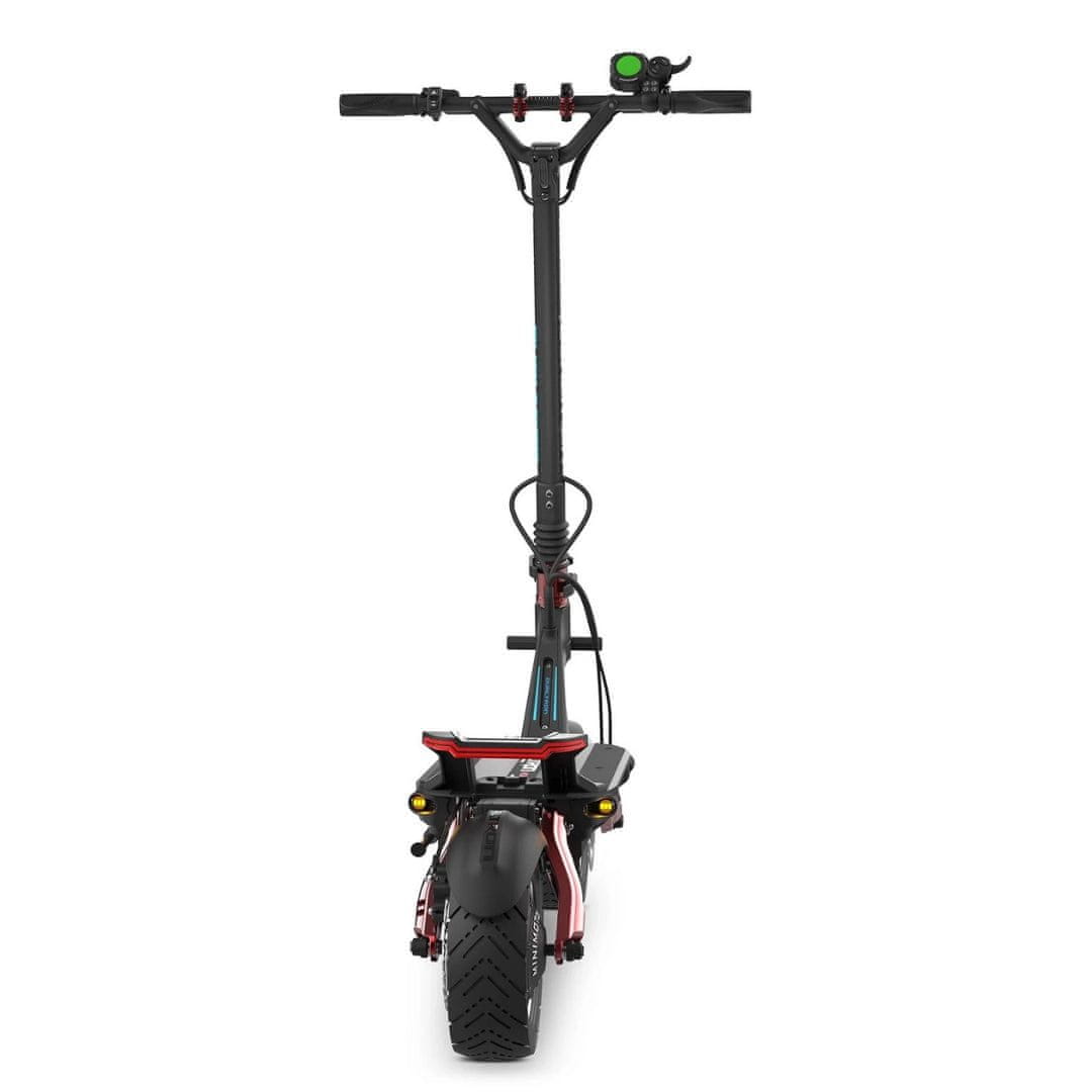 Dualtron Achilleus poganjata dva zmogljiva motorja s skupno maksimalno močjo 4648W, ki ju krmilita dva 35A krmilnika. Ta konfiguracija zagotavlja bliskovite pospeške in z lahkoto premaguje strme klance z naklonom do 58% (približno 30°). Z gumbom za izbiro pogona lahko preklapljate med enim ali dvema motorjema in tako prilagodite vožnjo trenutnim potrebam – od varčnega načina do polne moči.