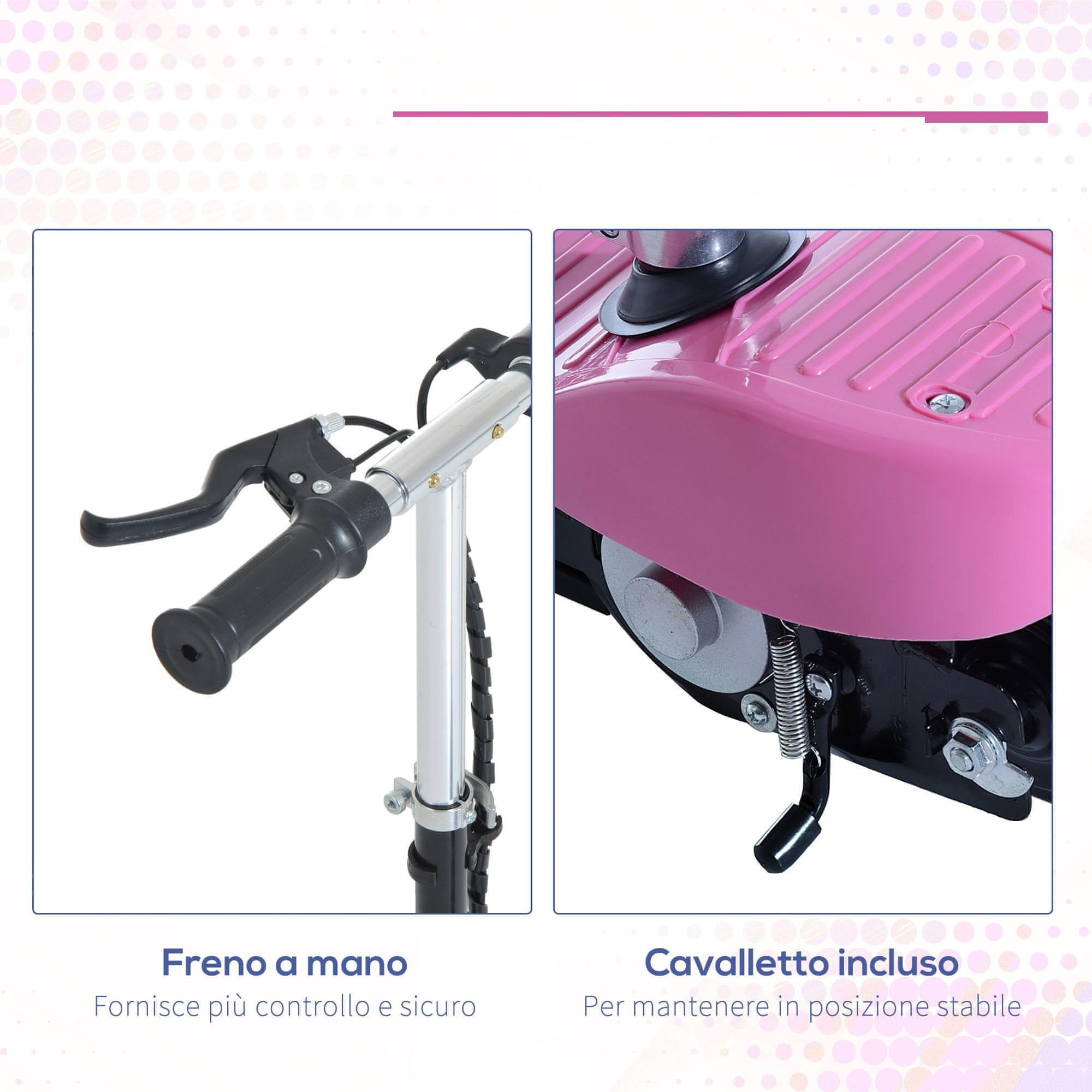 HOMCOM zložljiv električni skuter za otroke z nastavljivo višino kovinskega sedeža in pe roza, 78x37x99cm