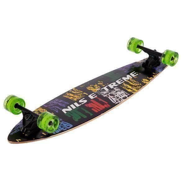 Nils Extreme Wood Tear Longboard izstopa s svojim modernim dizajnom in nenavadno obliko, ki spominja na desko za surfanje. Zasnovan je za rekreativno vožnjo po tlakovanih površinah, pa tudi za izvajanje tehničnih trikov v rolkarskih parkih in na rampah. Sistem Top Mount postavlja rolko višje od tradicionalnih longboardov, zaradi česar je bolj okretna. Wood Tear Longboard ima kolesa 65 × 51 mm z odličnim oprijemom. Uporaba 9-slojne vezane plošče iz kanadskega javora zagotavlja visoko trdnost in vzdržljivost. Ležaji ABEC 9 zagotavljajo odlične vozne lastnosti in hitrost. Rolka je opremljena s poliuretanskimi kolesi, ki so zelo odporna proti obrabi in zagotavljajo odlično dušenje vibracij, kar zagotavlja odlično udobje vožnje.
