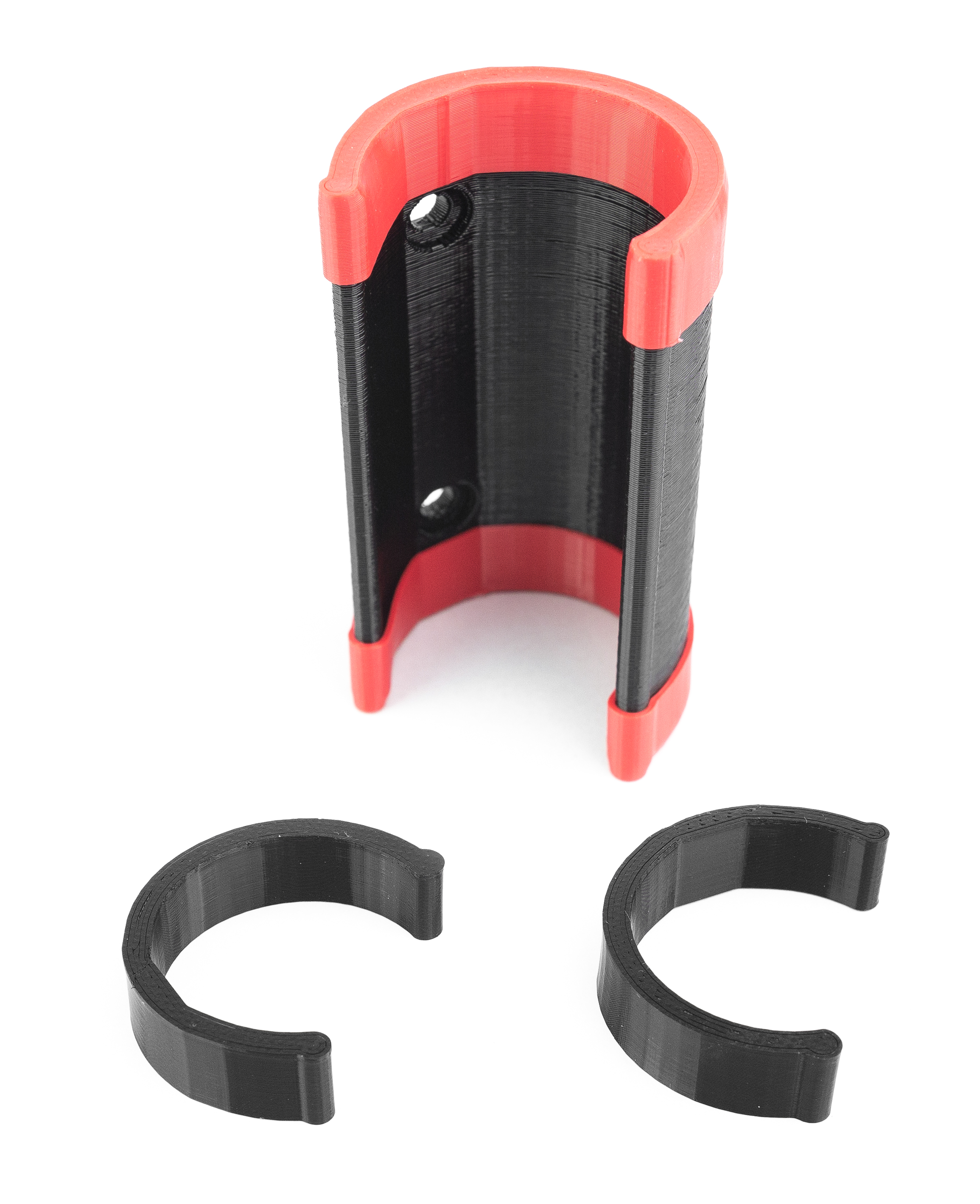 Nosilec je sestavljen iz zgornjega in spodnjega držala. Glavni zgornji ročaj, ki drži U-LOCK, in dodatni spodnji ročaj, ki podpira