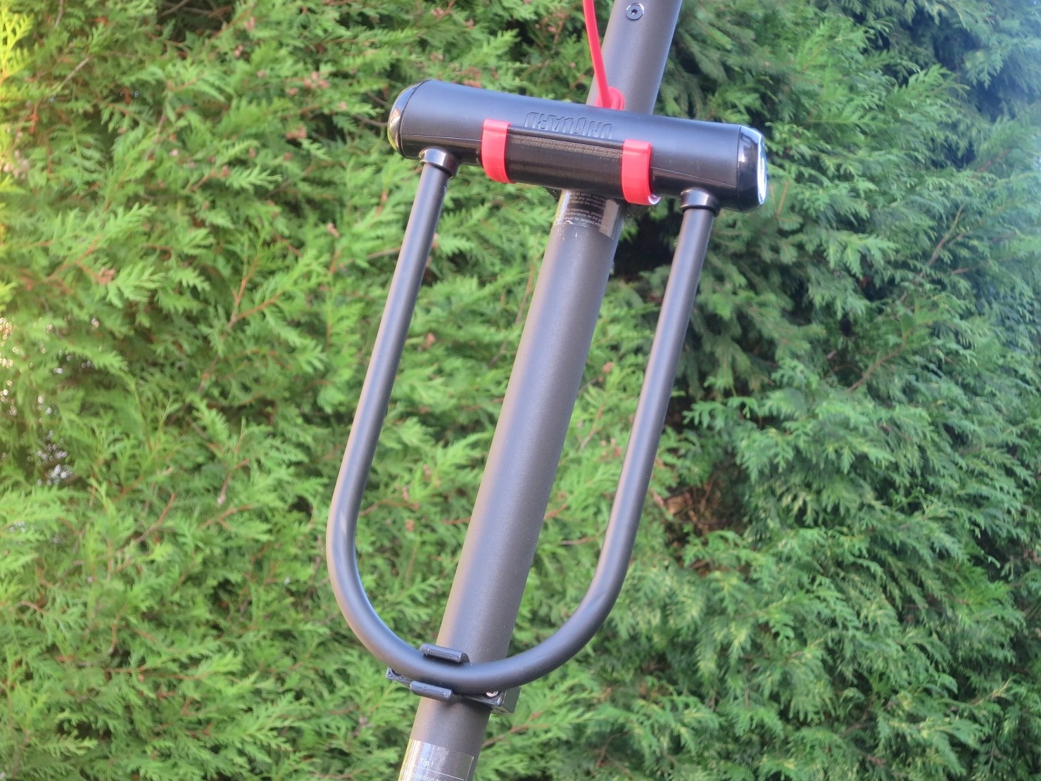 teža in velikost ključavnice tipa U-LOCK pomembni. Zdaj lahko ključavnico priročno in varno prevažate neposredno na skuterju, jo imate vedno s seboj in ne boste čutili dodatne teže in velikosti ključavnice v nahrbtniku ali torbi.