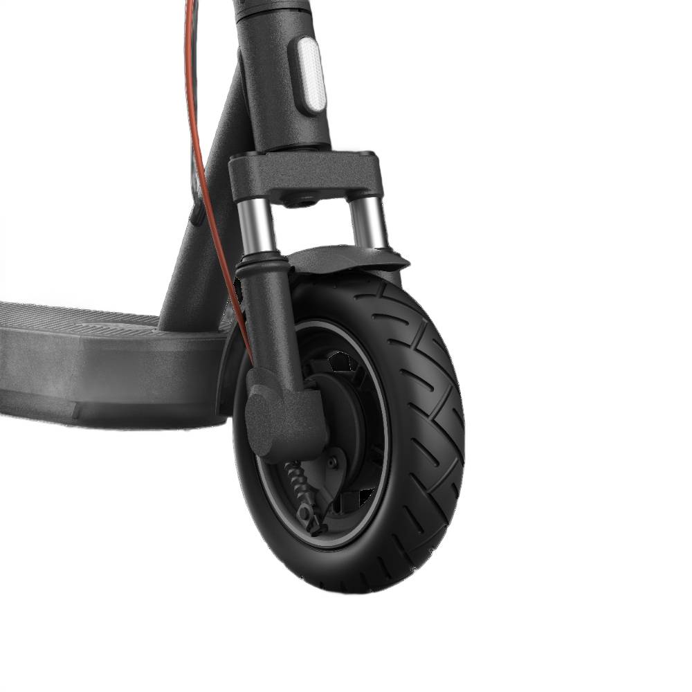 Xiaomi električni skuter 5 Pro je napreden električni skuter, ki združuje sodobne tehnologije s solidno izdelavo, kar zagotavlja udobno in varno vožnjo. Opremljen z dvojnimi amortizerji spredaj in enim amortizerjem zadaj , učinkovito zmanjšuje udarce na neravnih površinah in zagotavlja gladko vožnjo. Velike, 10-palčne pnevmatike brez zračnice s širino 60 mm zagotavljajo boljši oprijem in stabilnost pri zavijanju.