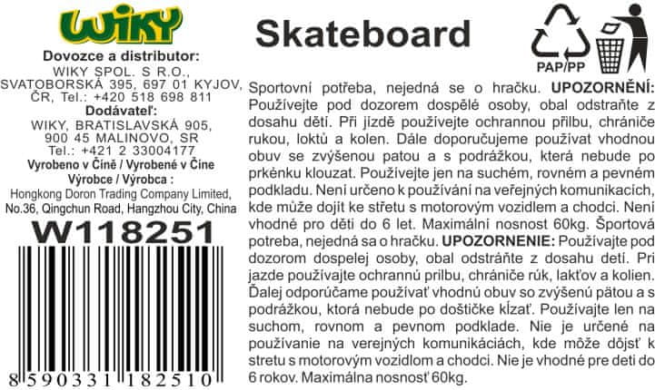 Deska za deskanje v različnih barvah. Dimenzije 56 × 15 cm. Nosilnost 60 kg. Za otroke do 6. leta starosti. 4 barvne različice.
