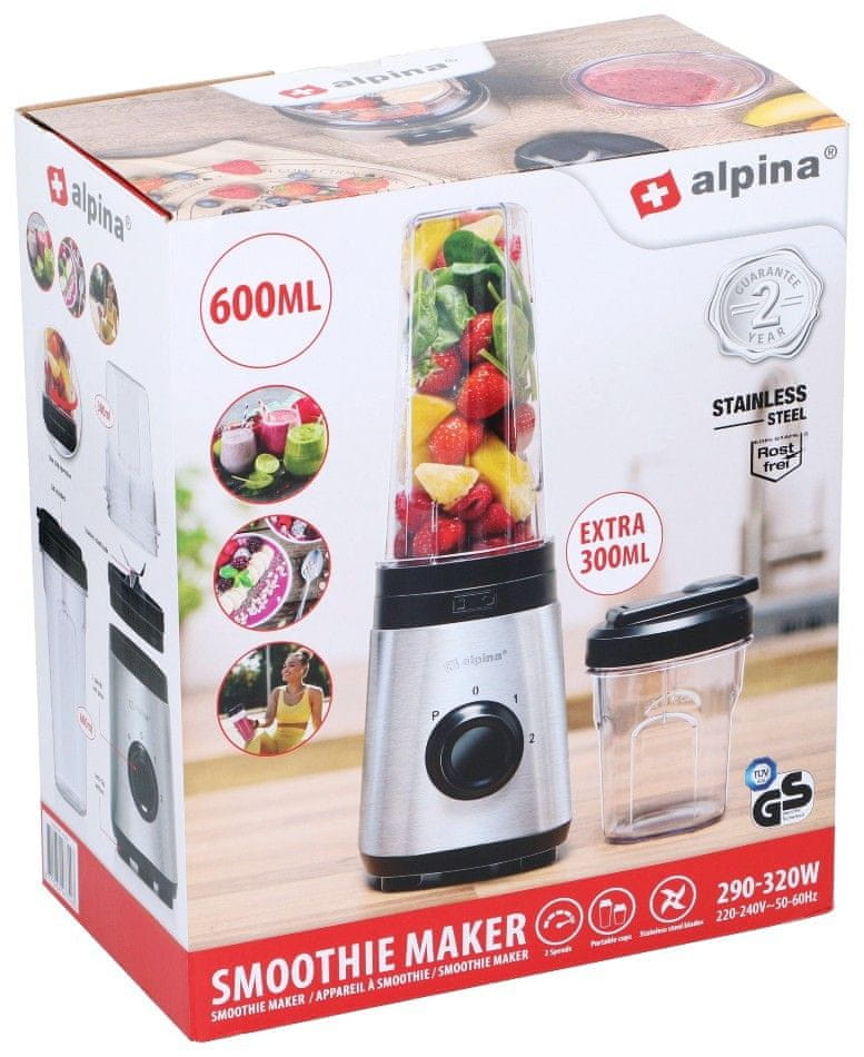 Alpina Smoothie mešalnik iz nerjavečega jekla + dve steklenici 320W ED-247354