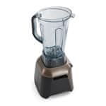 Stene osnovne 2,5-litrske posode so narejene iz tritana, posebne lahkega, zdravju varnega (brez BPA) in predvsem zelo vzdržljivega materiala. Za tišje delovanje smo poskrbeli tako, da smo zmogli dušenje motorja motorja. Posoda se gladko prilega stojalu z kovinskimi zobniki. Šest rezil iz izjemno kakovostnega materiala in idealno oblikovane za nežno drobljenje vse. Potrebujete med mešanjem dolivati vodo? Ne problem! Zaradi majhnega pokrova lahko to varno storite tudi med tekom. Po spletni strani lahko posodo izperete ali jo postavite v pomivalni stroj.