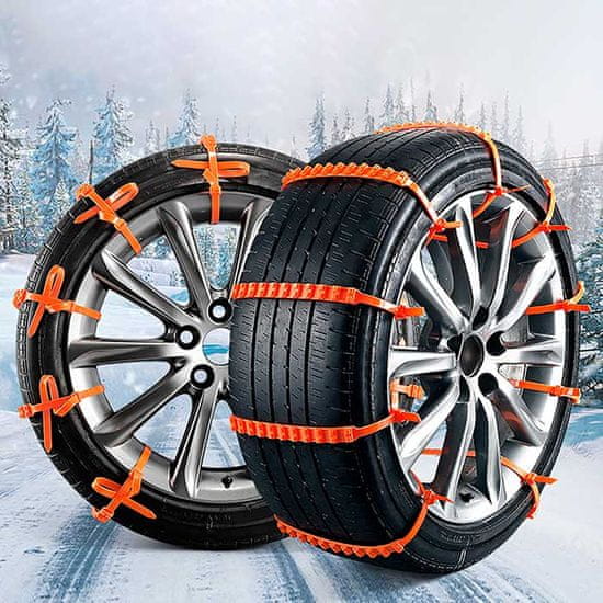 10-delni komplet univerzalnih snežnih verig zagotavlja odličen oprijem na ledu, blatu in snegu. Izdelane iz trpežne plastike, zagotavljajo varnost in preprečujejo zdrs. Enostavne za namestitev, primerne za avtomobile in tovornjake, idealne za nujne primere. Večkratno uporabne in vzdržljive. Celoten opis