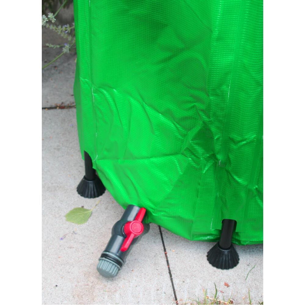 Zbiralnik vode Bass Polska vam omogoča zbiranje 1000 litrov deževnice iz žleba. Zbrano vodo je mogoče odstraniti na dva načina. Preprosto odprite zadrgo, da odstranite vodo z vrha. Pipo lahko odvijete tudi s priključeno cevjo ali navadno vrtno cevjo.