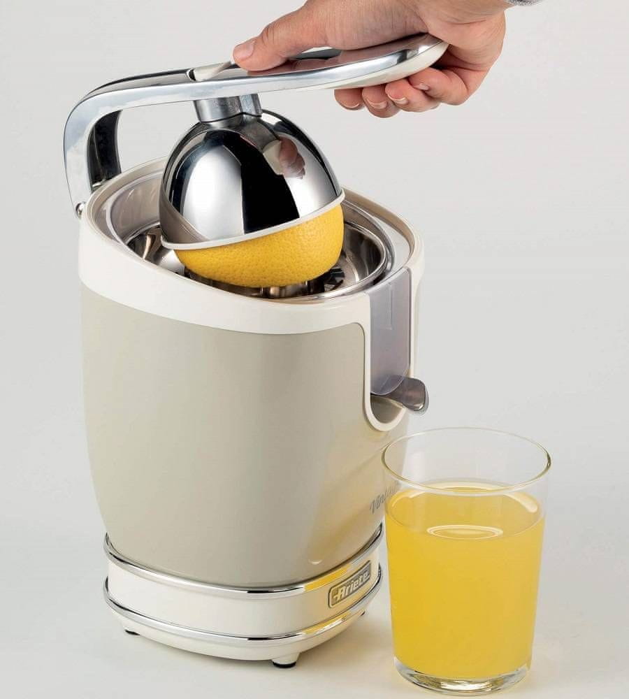 Eleganten retro aparat za citruse s kovinskim zaključkom in kromiranimi podrobnostmi. Celoten opis