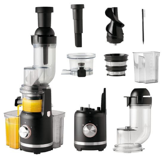 S počasnim sokovnikom Berlingerhaus BH-9610 iz kolekcije Black Rose odkrijte eleganco in praktičnost. Ta eleganten in zmogljiv sokovnik vam bo pomagal iz vašega najljubšega sadja iztisniti vsako kapljico! Zaradi tehnologije počasnega stiskanja se ohranijo tudi vlaknine in hranilne snovi sadja, zato dobite zdrav in z vlakninami bogat sok.