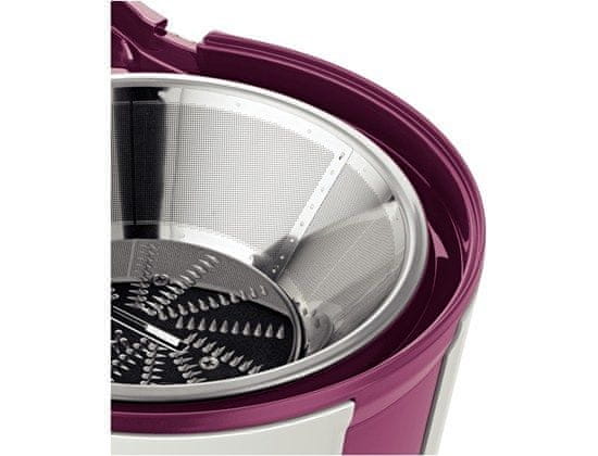 Zelo zmogljiv sokovnik, ki lahko predela celo sadje brez rezanja: hiter in enostaven za uporabo.