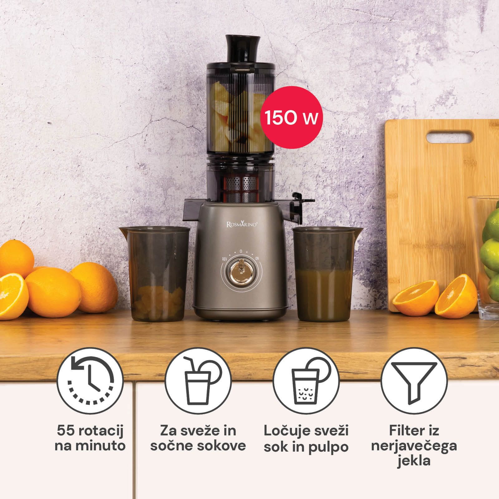 - Tehnologija počasnega stiskanja (55 vrt/min) za ohranjanje vitaminov