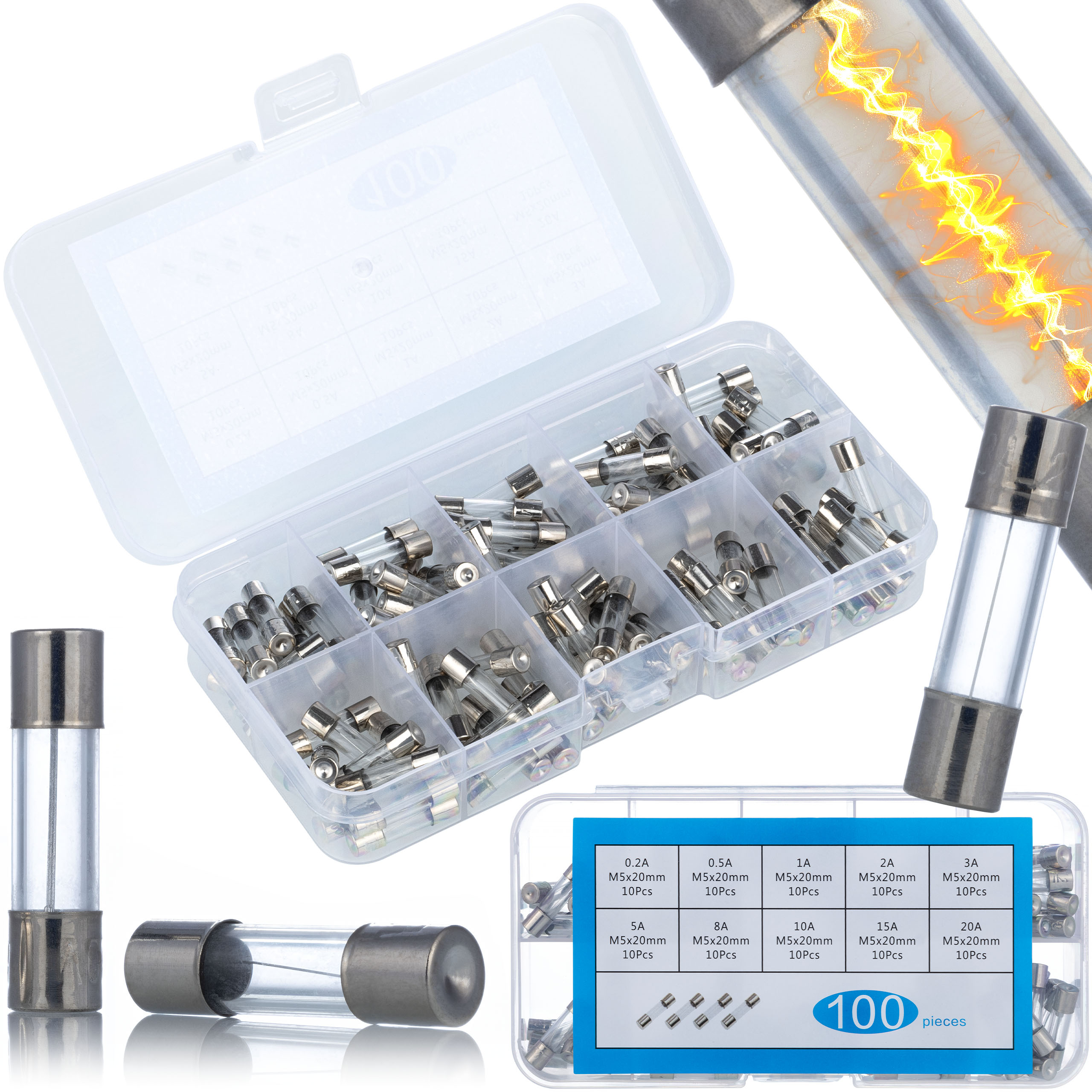 Rosfix Set Steklenih Hitrih Varovalk 5x20 Mm – 100 Kos, 0,2A–20A | za Elektronske Naprave