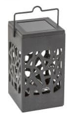 Estetska, viseča LED vrtna svetilka (lestenec). V kompletu je univerzalno držalo za montažo na ograjo, streho ali fasado. Opremljen s svetlečimi in energetsko varčnimi LED diodami, ki se napaja z vgrajeno baterijo in sončno ploščo