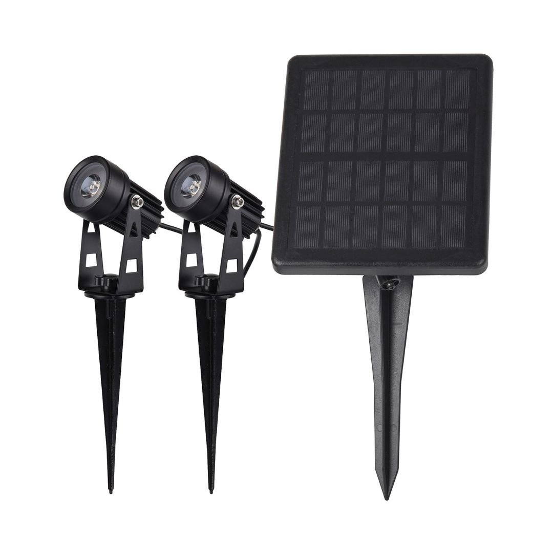 2× spot kovinska solarna svetilka 2×3W 3000K z ločenim solarnim panelom z 2m kabla IP65 Celoten opis