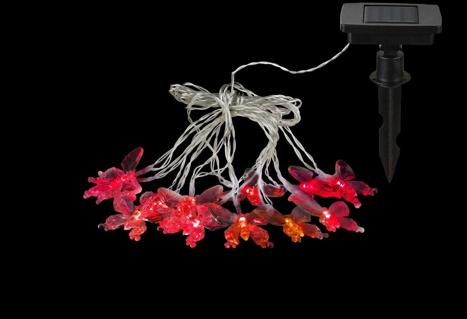 Ta solarni niz lučk je nekaj prav posebnega. Skupaj 10 svetilk, ki se nahajajo na 4,7 metra dolgi verigi, zahvaljujoč menjalniku barv svetijo v različnih barvah in tako ustvarjajo prijeten ambient. Vse skupaj zaokroži metuljasta oblika čebulic. Celoten opis