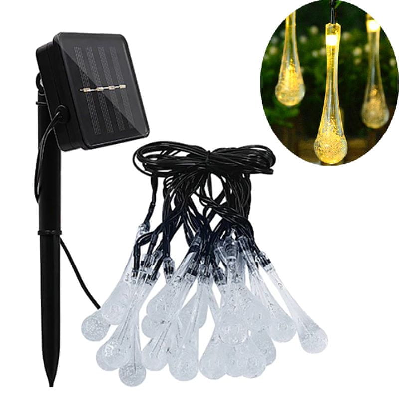 Solarna vrtna svetilka LED Girlanda DEKORATIVNA 20× LED solza Toplo barve