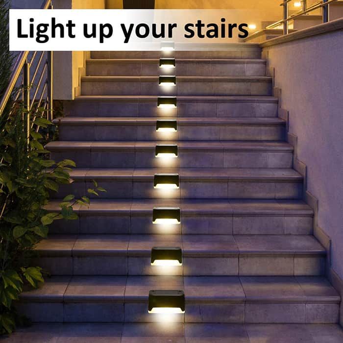 Netscroll 4-delni komplet vodoodpornih LED solarnih vrtnih luči, za stopnice, teraso, ograjo, osvetlitev vrtne potke, hitro polnjenje, prihranek pri stroških elektrike, avtomatski priklop, PatioLights