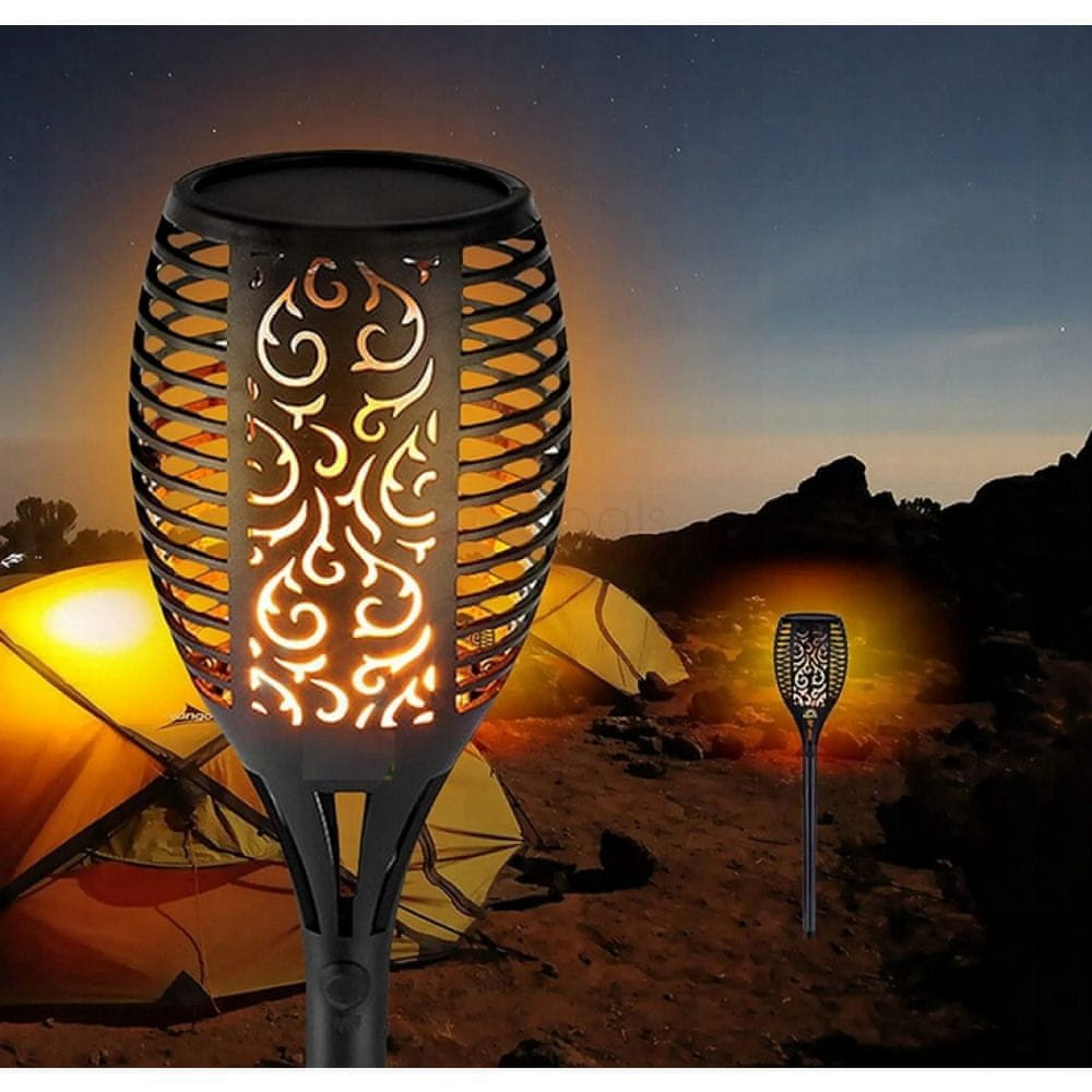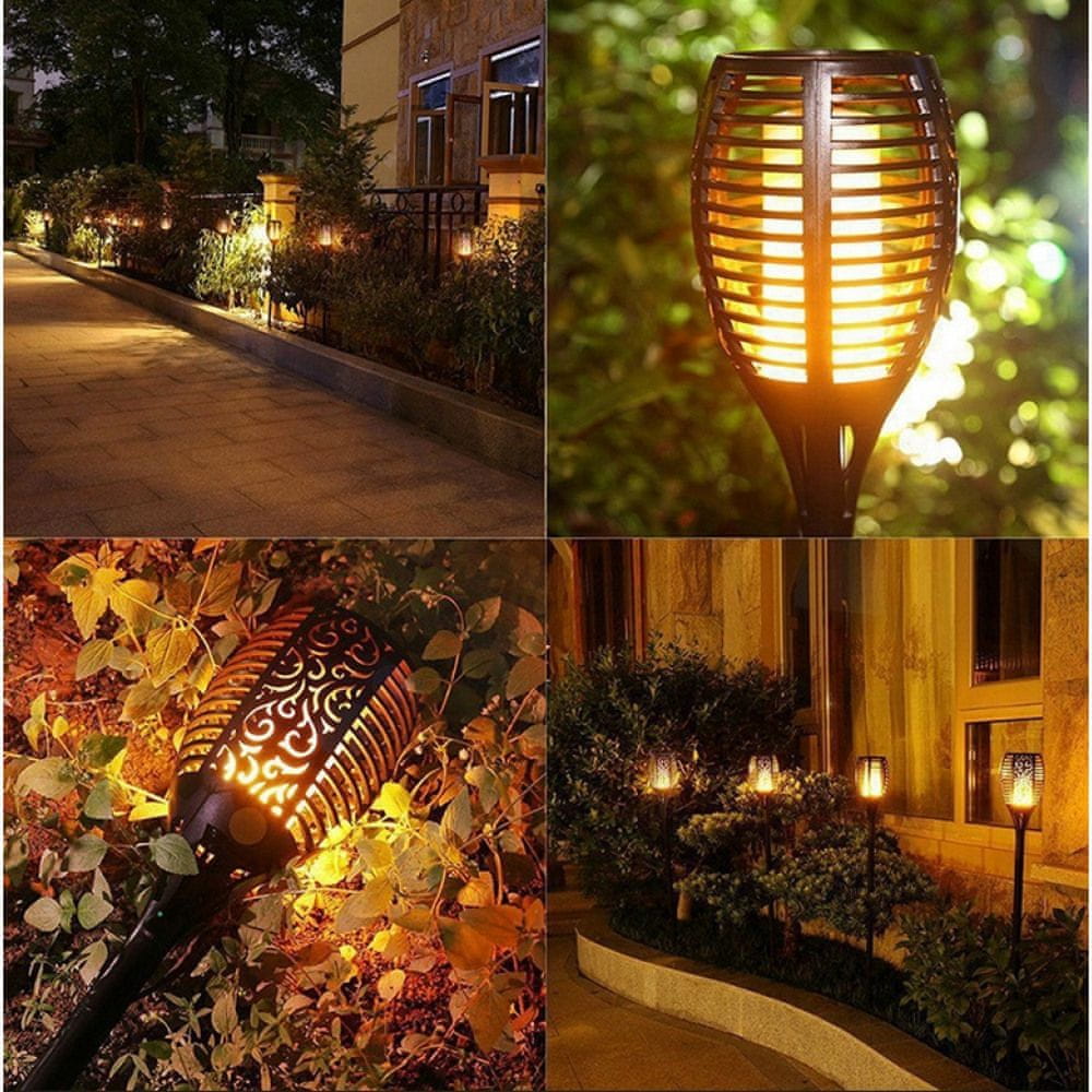 LED svetilke v videzu bakle za zanimivo okrasitev vrta in okolice hiše. Sodoben polikristalni solarni panel zagotavlja visoko učinkovitost sijalke. V sončnih dneh traja približno 6–8 ur, da se popolnoma napolni baterija svetilke, ki lahko sveti s polno močjo približno 8 ur. Svetilke nimajo kablov in zagotavljajo popolno svobodo montaže. Svetilka se samodejno prižge, ko se zmrači.