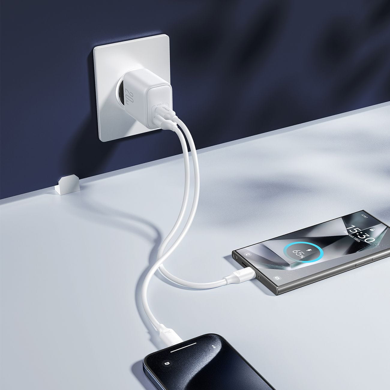 Joyroom JR-TCF21 omogoča hkratno polnjenje dveh naprav, kar je izjemno praktično pri vsakdanji uporabi. Z vrati USB-C in USB-A lahko hkrati priključite dve napravi, kar odpravlja potrebo po več polnilnikih. Je idealna rešitev za družine, pare ali ljudi z več kot eno mobilno napravo.