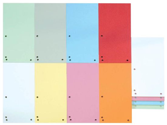 Izdelani iz 190gsm recikliranega kartona. Pakirani v zaščitno folijo. Format: 1/3 A4 (amerikanka). število lukenj: 4. število ločilnih listov: 100. Dimenzije: 235×105mm. Za vodoravno ali navpično vstavljanje v registratorje. Celoten opis