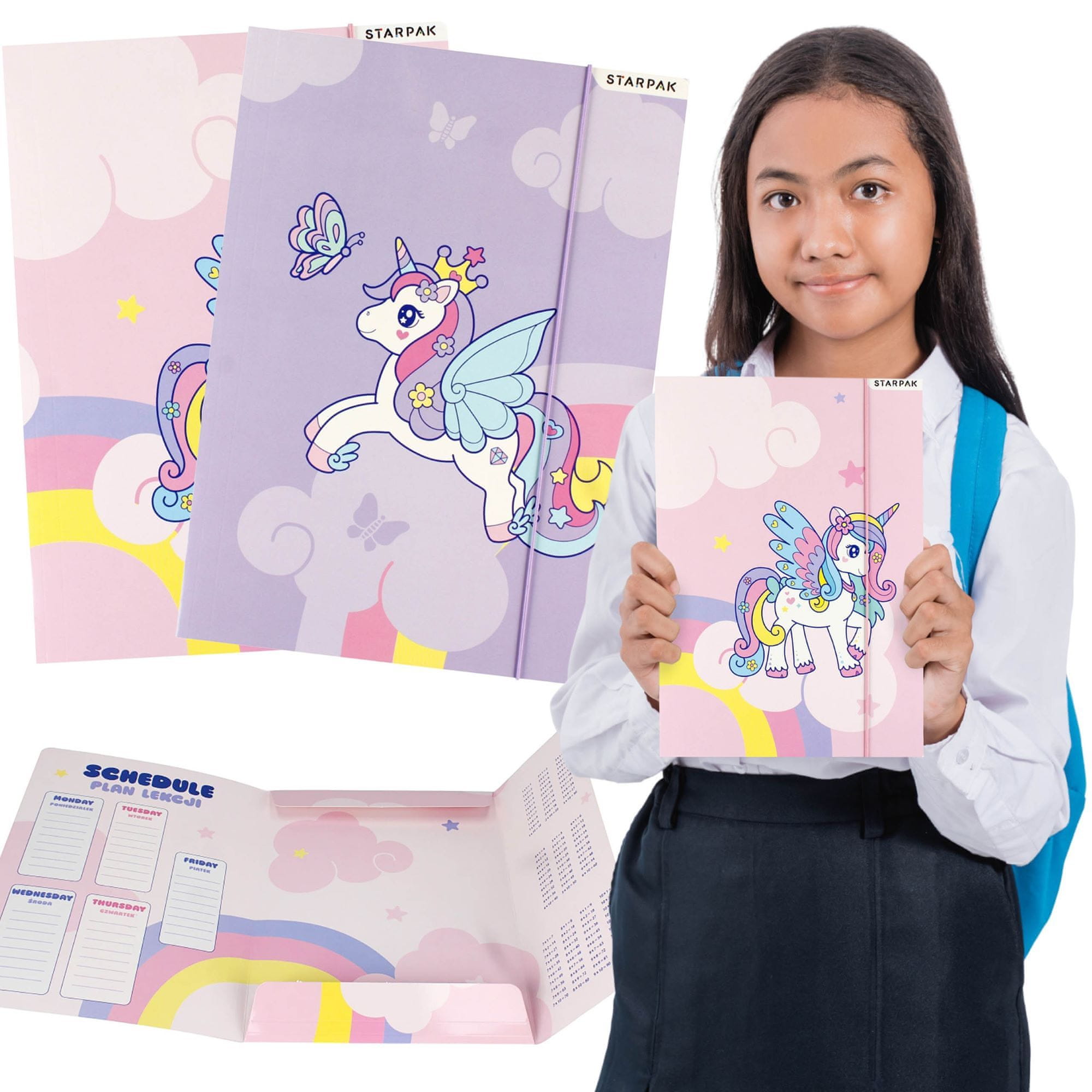 Pisana mapa z motivom prikupnih samorogov STARPAK je odličen način za shranjevanje šolskih dokumentov, diplom in umetniških del.