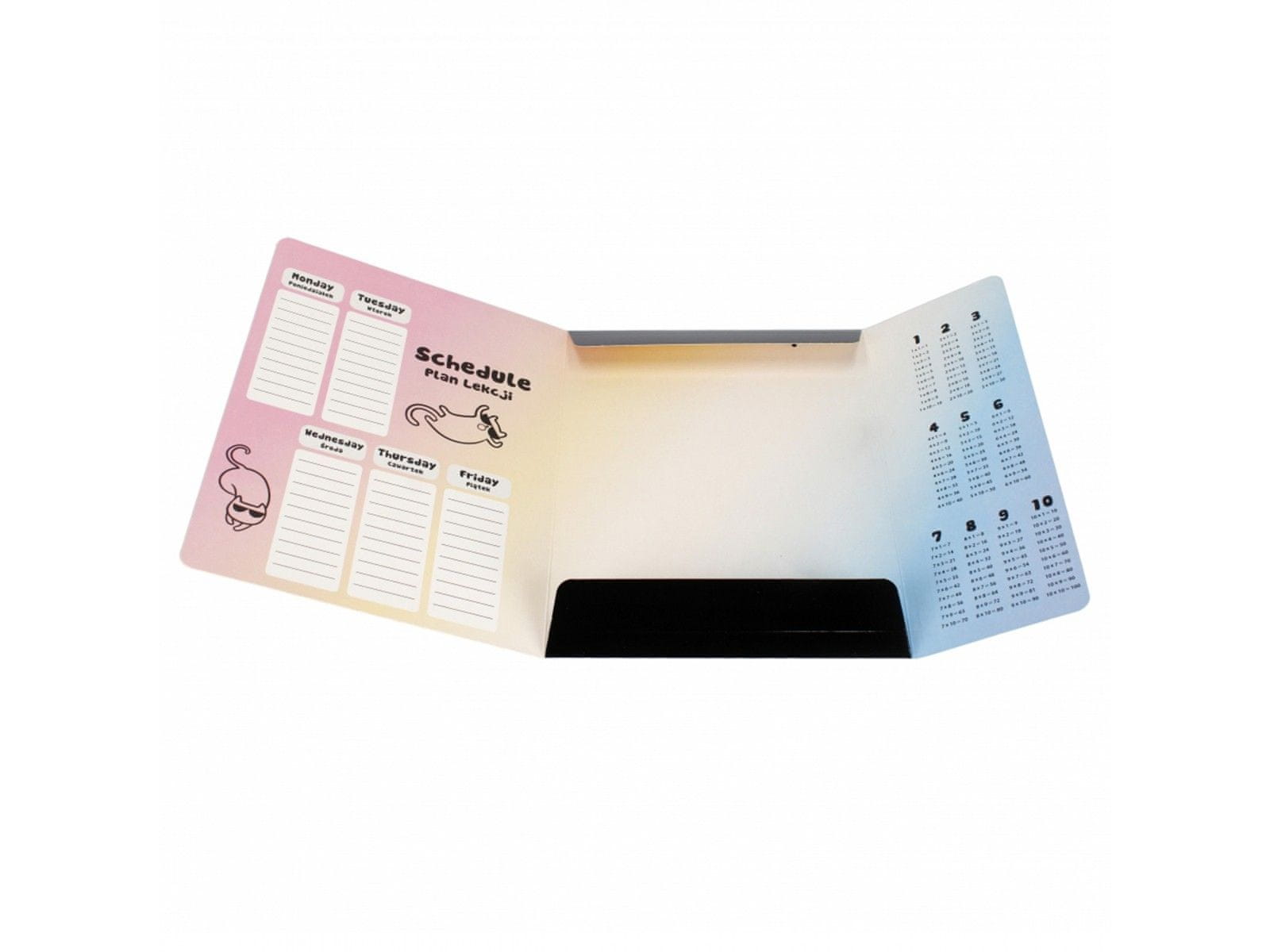 Elastična mapa STARPAK z motivom neonske mačke je elegantna in praktična rešitev za šolo ali shranjevanje risb. Zaradi formata A4 in elastičnih trakov je vsebina mape varna in urejena. V notranjosti je tabela množenja, idealna za učence, ki cenijo izviren slog. Celoten opis