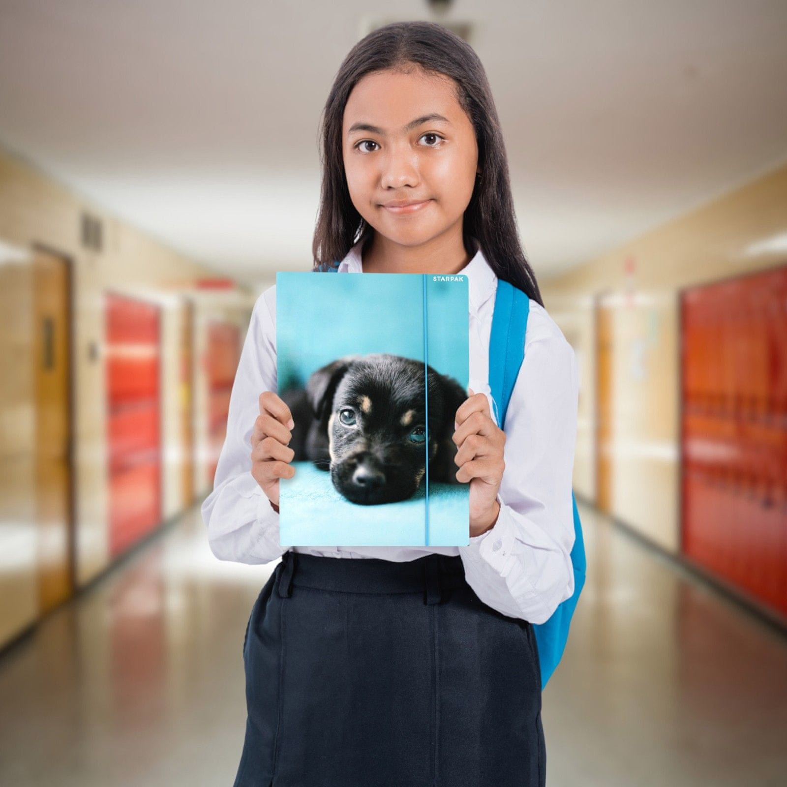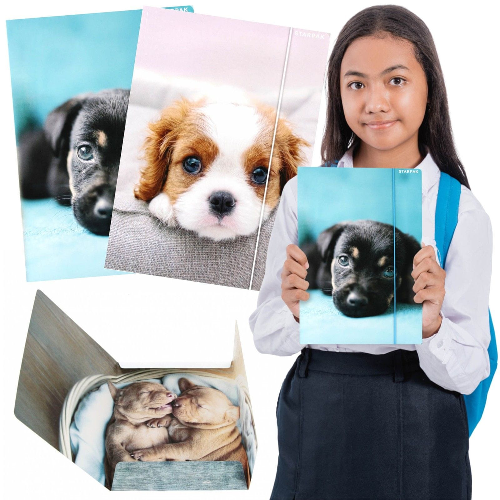 Ta mapa A4 STARPAK z elastičnim trakom in prikupnim motivom psička je odlična izbira za vsakega mladega ljubitelja živali.