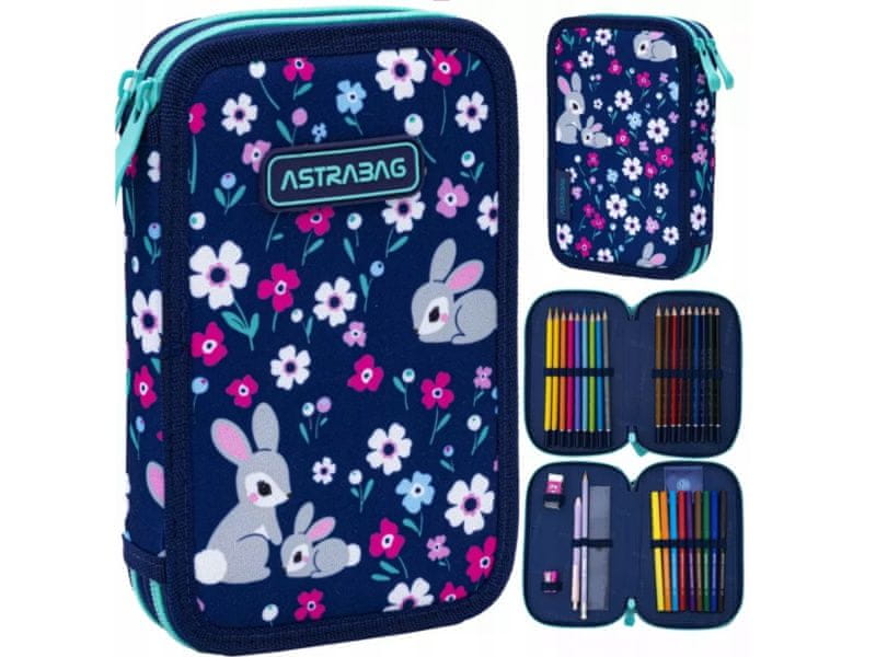 Dvojni peresnik ASTRABAG je praktičen šolski pripomoček s popolno opremo PREMIUM. Z dvema predaloma in organizatorjem bodo vsi pisalni pripomočki lepo urejeni.