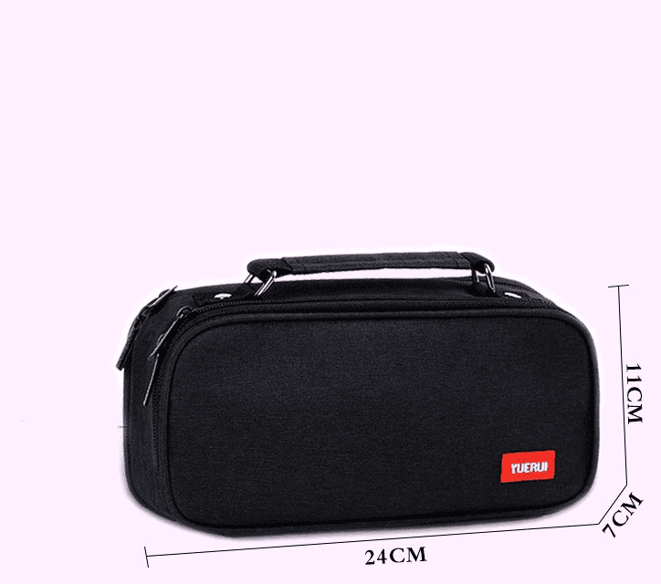 Organizator za svinčnike TUBA je visokokakovosten in večfunkcijski etui, izdelan iz trpežnega poliestra. Zaradi njegovih dimenzij 24 × 11 × 7 cm in dveh predalov z zadrgo lahko enostavno organizirate ne samo šolske ali pisarniške potrebščine, temveč ga lahko uporabite tudi kot škatlo za orodje ali kozmetično torbico. Njegov univerzalen črn dizajn je primeren za otroke in odrasle, kar ga naredi za idealen dodatek za vsakogar.