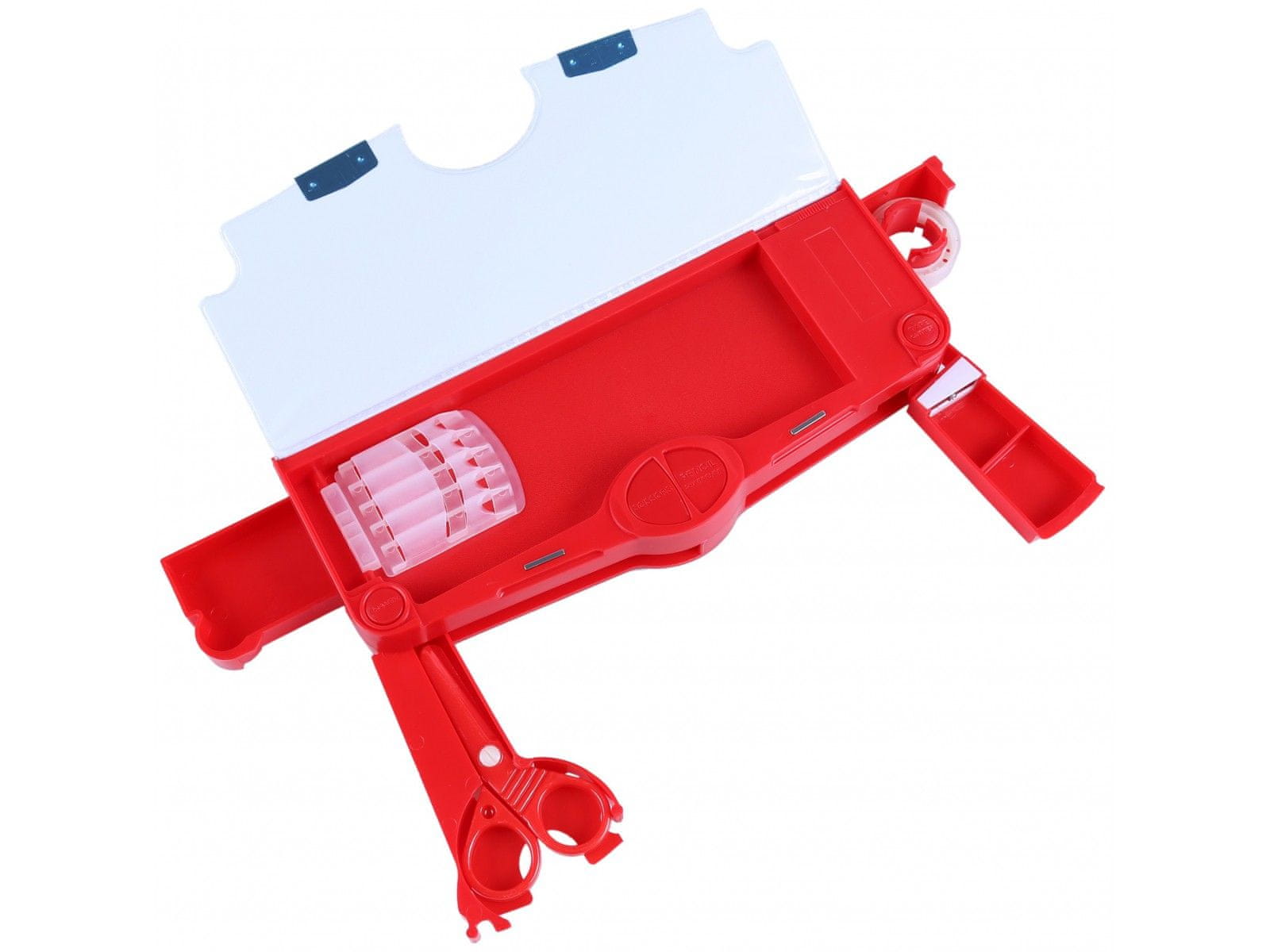 Večnamenski plastičen peresnik v rdeče-črni barvi z motivom Miske Minnie. Peresnik ima škarje, lepilni trak, šilček in ravnilo, ki se odprejo s pritiskom ustrezne tipke. Ima eno prekato s prostorom za svinčnike in se zapira s kovinskimi zaponkami. Peresnik lahko shrani vse najnujnejše šolske potrebš Celoten opis