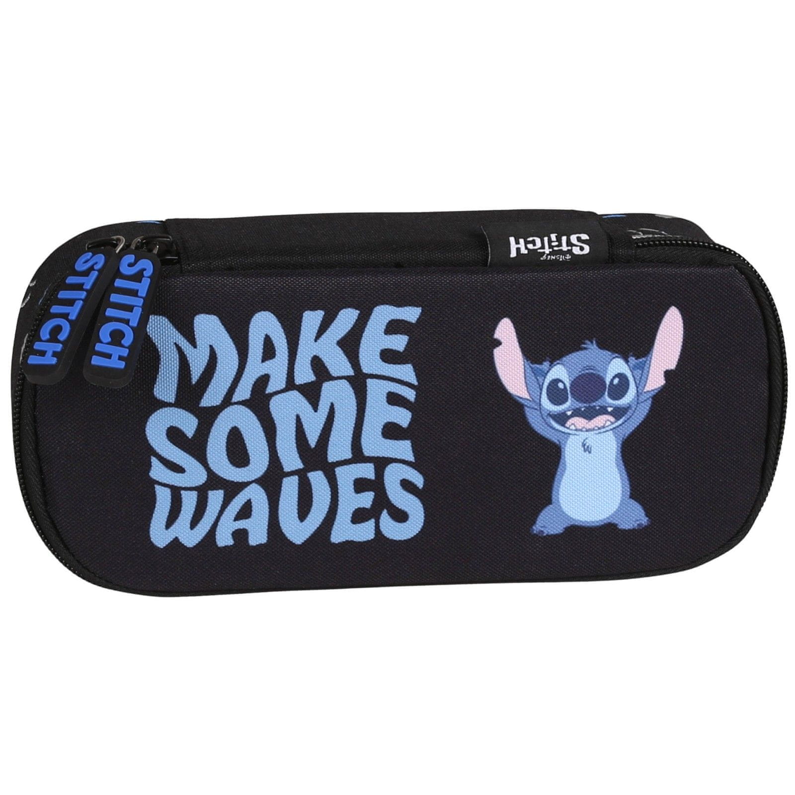 Ovalni peresnik PASO z motivom Stitch je elegantna in funkcionalna rešitev za vsakega učenca.Črna barva z modrimi poudarki in napisom „Make Some Waves“ daje svinčniku sodoben in mladosten videz.Izdelek ima en predal z zadrgo in notranjo klop z elastiko za šolske potrebščine.Zadrga, okrašena z oznako Celoten opis