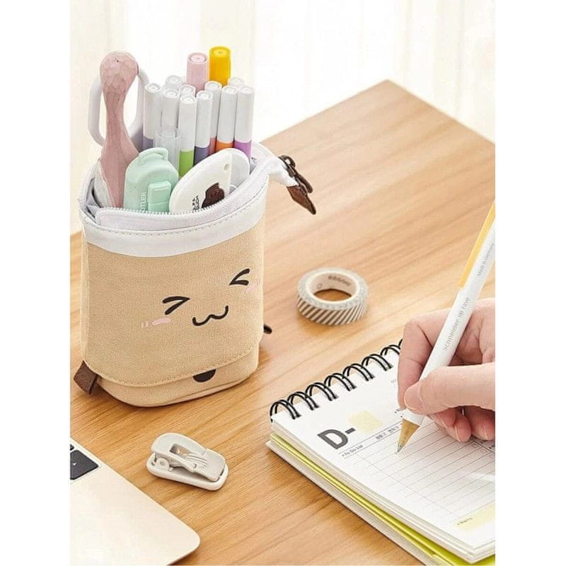 je idealna rešitev za organizacijo vaših pisarniških potrebščin ali kozmetike. Narejena je iz visoko kakovostnega 100% poliestra, kar zagotavlja dolgo življenjsko dobo in odpornost proti vsakodnevni uporabi. Elegantna kremno rjava barva peresnice ji daje sofisticiran videz, ki se prilega vsakemu okolju.
