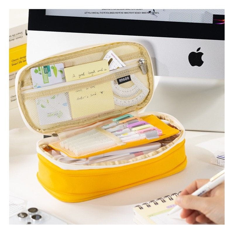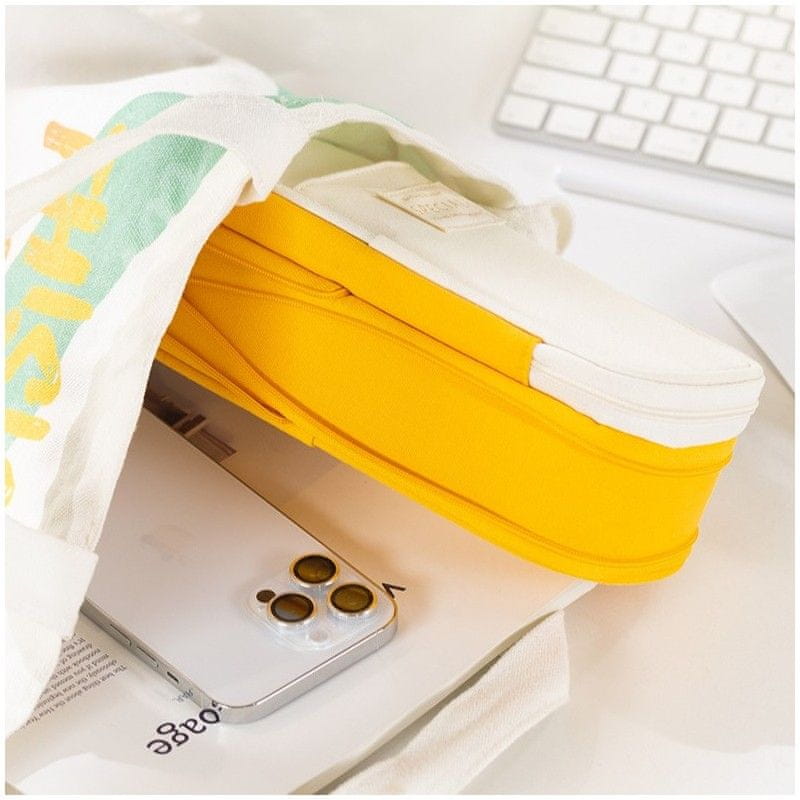 Sodoben kremno rumen dizajn peresnice ne le da izpolnjuje svojo praktično funkcijo, temveč tudi estetsko dopolnjuje vašo šolsko opremo. S tremi predali je dovolj prostora za svinčnike, označevalce in druge drobnarije, pri čemer vse ostaja pregledi urejeno. Ni važno, ali jo uporabljate v šoli, pisarni ali v prostem času, ta peresnica bo postala neodtisalni del vašega vsakodnevnega življenja.