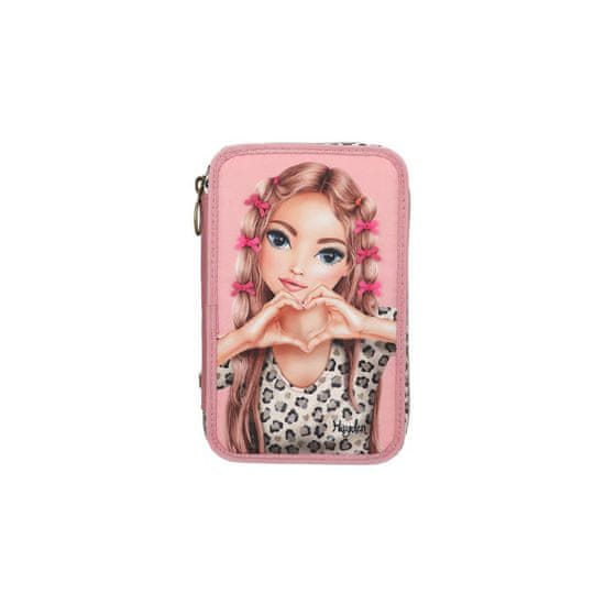 Top Model Třípatrový penál s výbavou a mašličkami Leoheart, Růžový s leopardím vzorem, Hayden