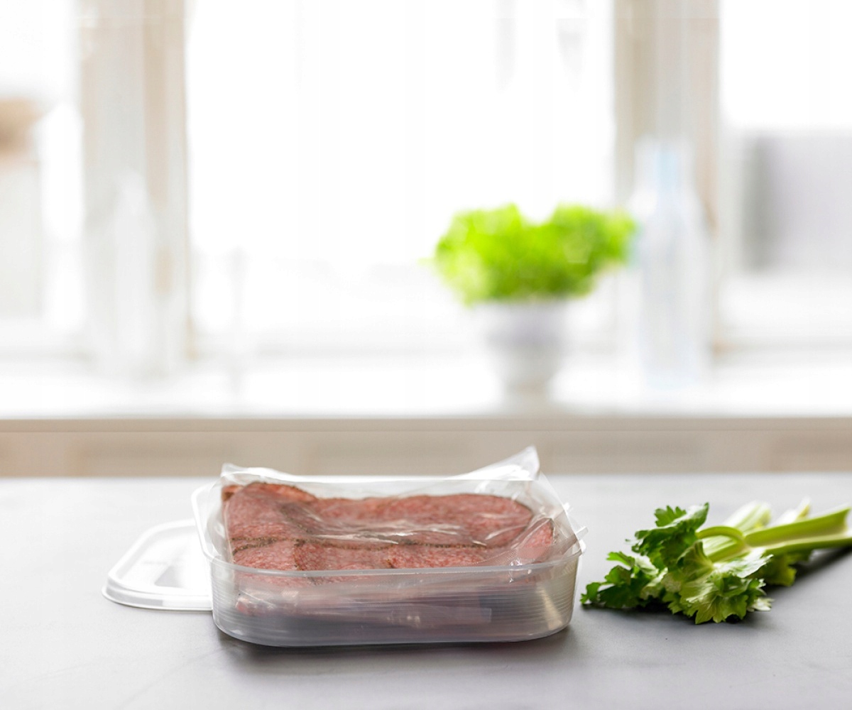 Modularne posode za optimalno shranjevanje živil v hladilniku in zamrzovalniku. Prozorne škatle olajšajo ogled, kaj je notri, in iskanje sestavin, ki jih potrebujete.