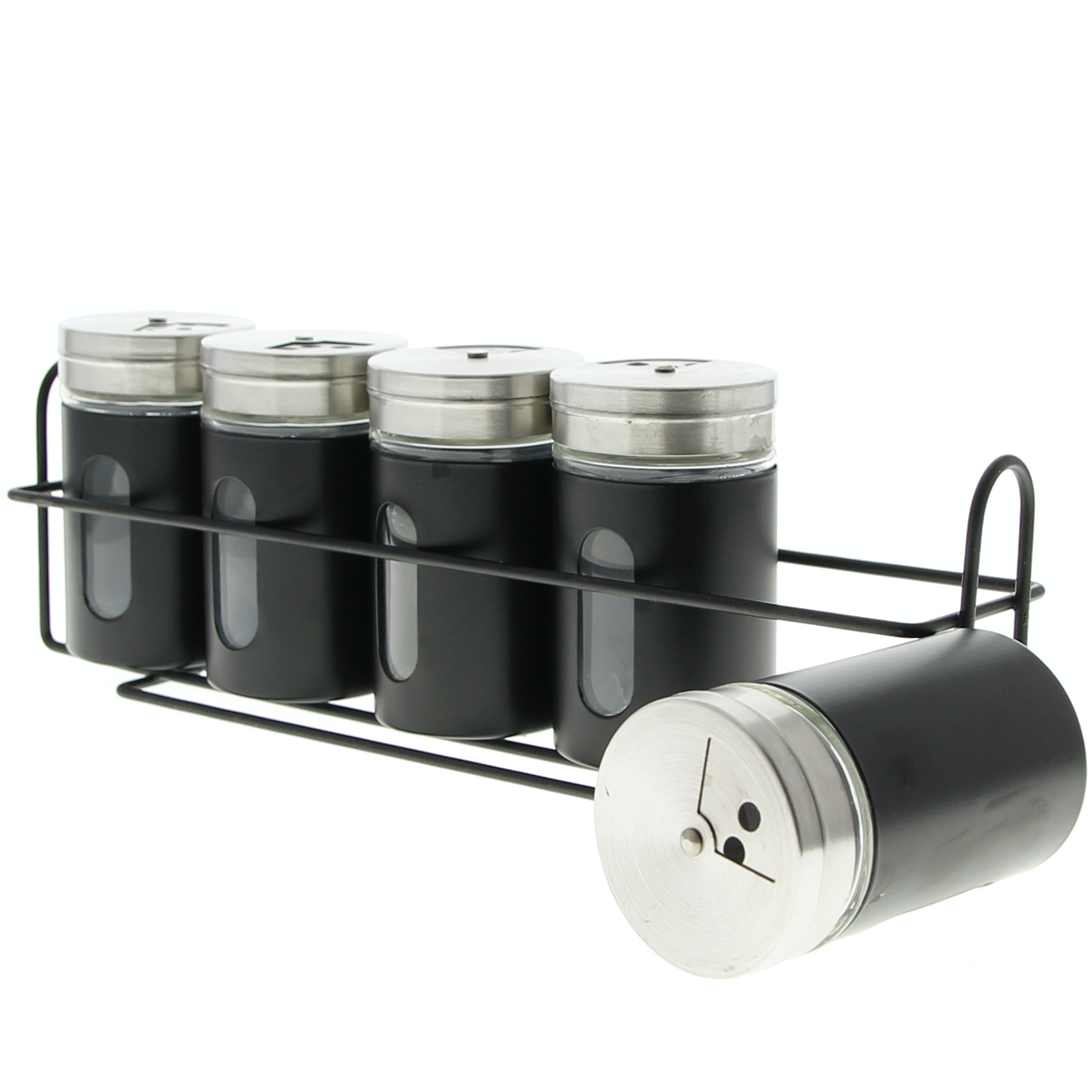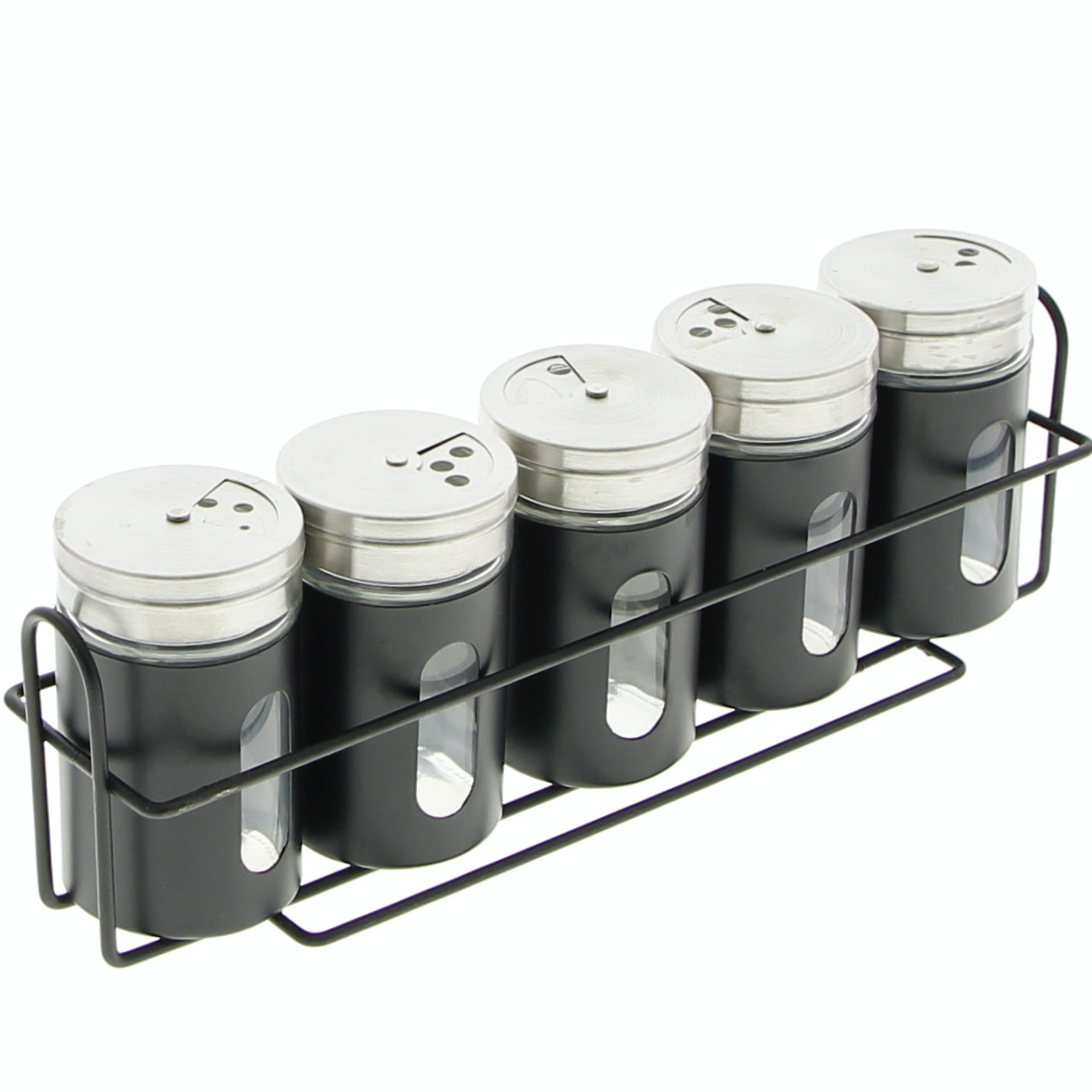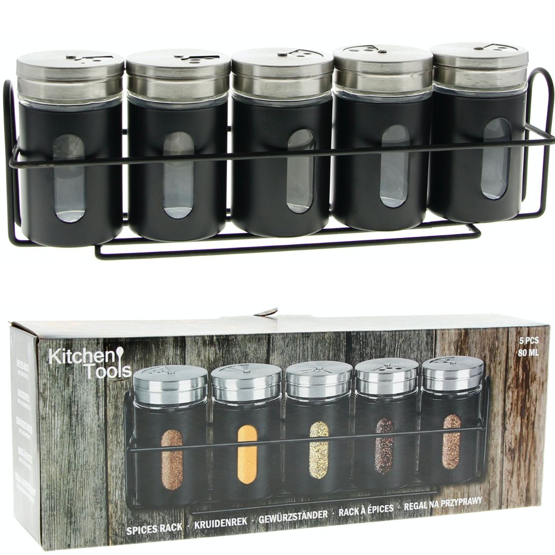 shumee STOJALO ZA ZAČIMBE POLICA ŠKATLA ZA ZAČIMBE 5 KOSOV JEKLO ČRNO ORGANIZATOR