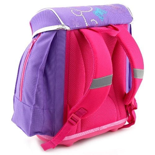 Natančno izdelana zelo lahka šolska aktovka z loputo zapiranje z zaponko . Notranjost je razdeljena z enim velikim žepom in več majhnimi žepi za enostavno organizacijo. Praktični sprednji toplotni žep za prigrizek in dva stranska žepa za majhne predmete z zadrgo.