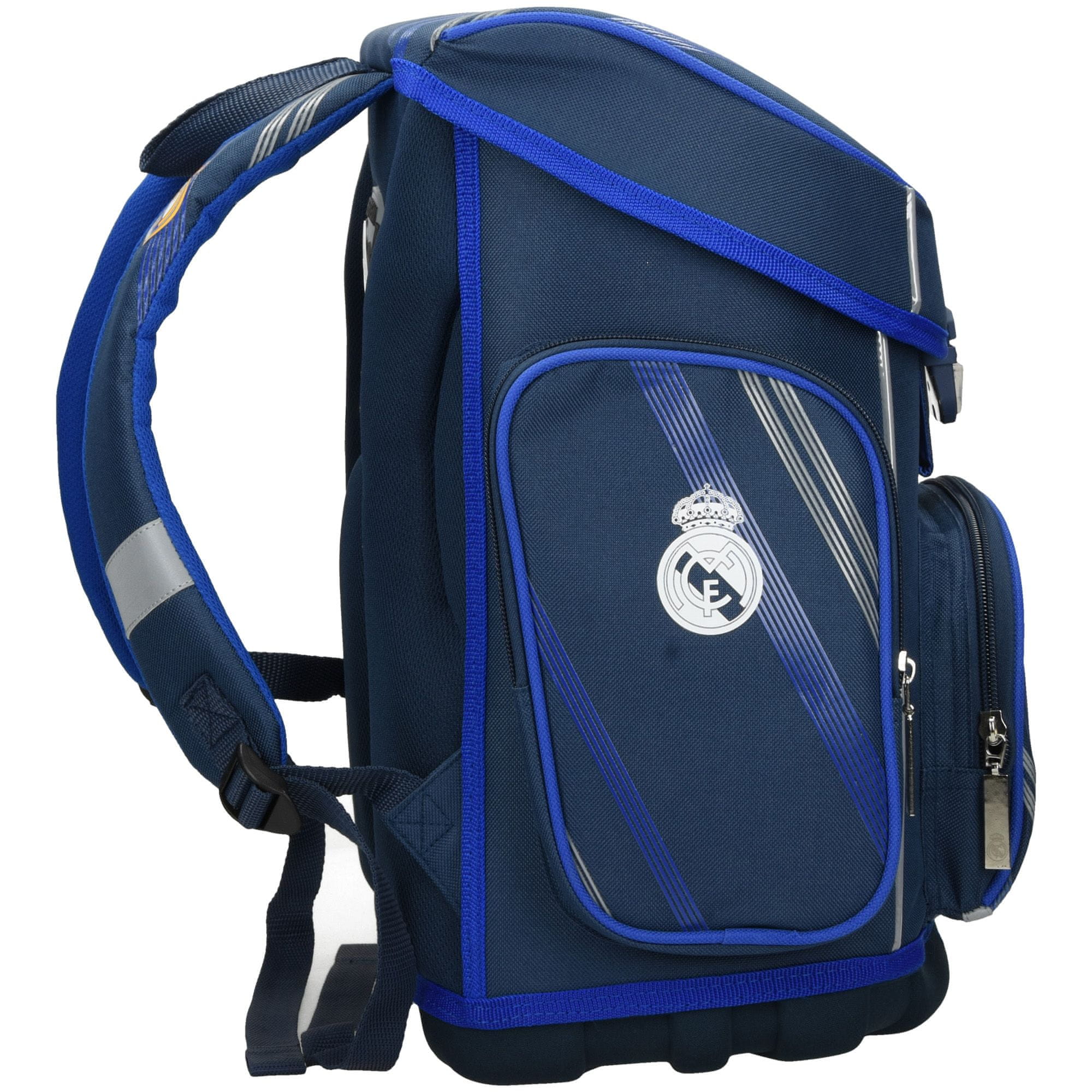 Šolska torba ima stabilno in trdo dno. Ergonomsko oblikovano hrbtišče. Mehke in oblazinjene naramnice iz trpežnega materiala za enostavno nošenje in uporabo. Dva stranska žepa. Odsevni deli za boljšo vidnost na cesti. Dimenzije: 31×22×40 cm.